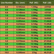 Line No. | Diameter (mm) | Pull (KG) | Pull (LB) |